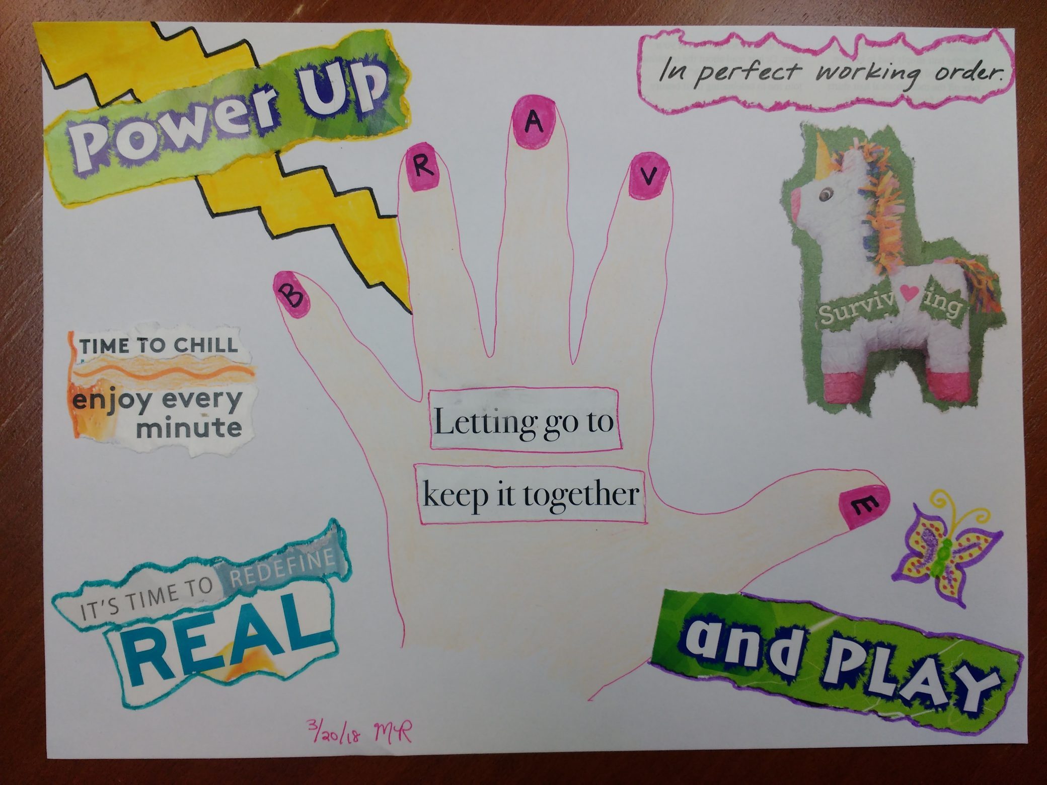 Then I figured I should probably go someplace safe. At first nothing came to mind, but then I remembered I have a list of places on a crisis plan in my journal. I tried to recall them instead of looking and, as the places came to mind, I asked myself what they all had in common… The only thing these places had in common was me. So, the only safe space is me. It’s a lot to take in.