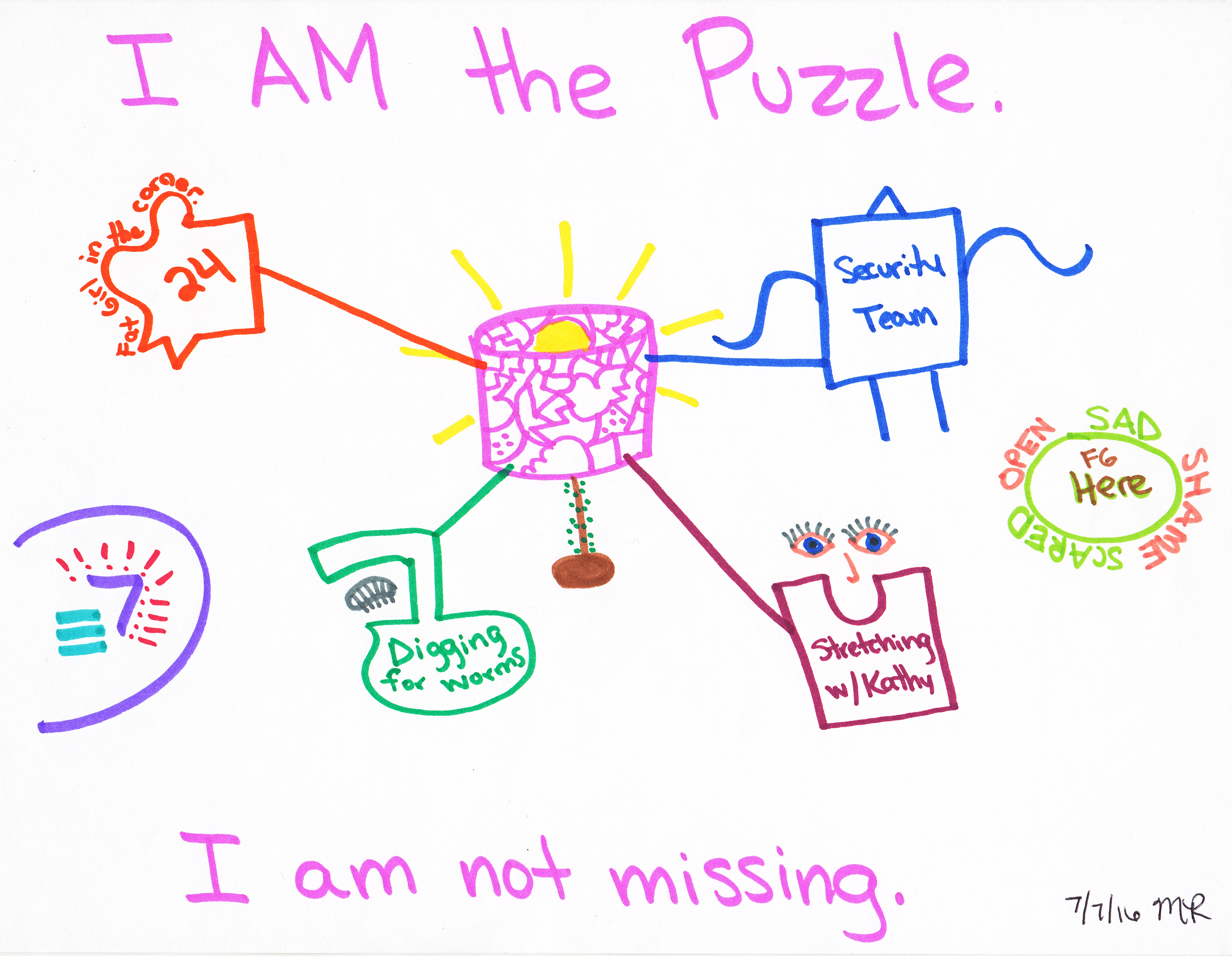 I’ve been doing Phoenix Rising Yoga Therapy with Soleil since June of this year (2014). It is amazing for me. After so many years of dancing I move to express, to experience. Traditional therapy has brought me a long way but this takes me deeper, lets me explore the inner workings of myself by simply listening, following, moving, being still. After each session I draw something . This is my collection. I will add to it as I create more.