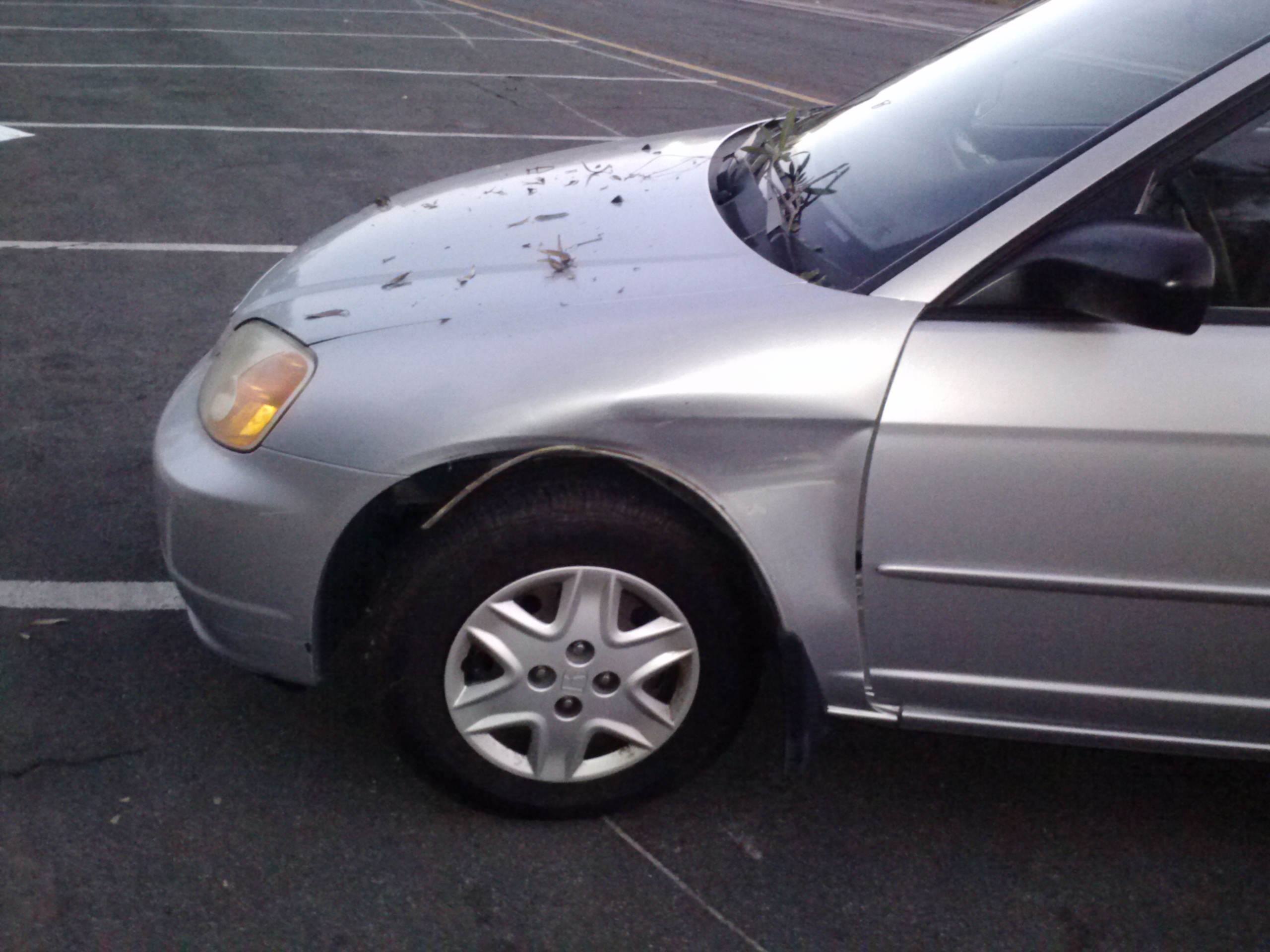 My friend Sue who was with me had no idea what was going on, other than that I had swerved twice and that we were now friends with a bush. The car smelled like something was burning and I told her to get out. The drivers side panel was smashed so the door only slightly opened. The windshield wipers held decorative pieces of bush. I called State Farm and we walked over to the farmer’s market. I’ll tell ya, like a good neighbor State Farm is NOT there. I even tried singing the jingle. Didn’t work. It took 3 hours of call after call after call, being transferred and cut off. Didn’t help that midway through my phone started shutting itself off whenever they put me on hold. Eventually the tow truck got there and took the car away.